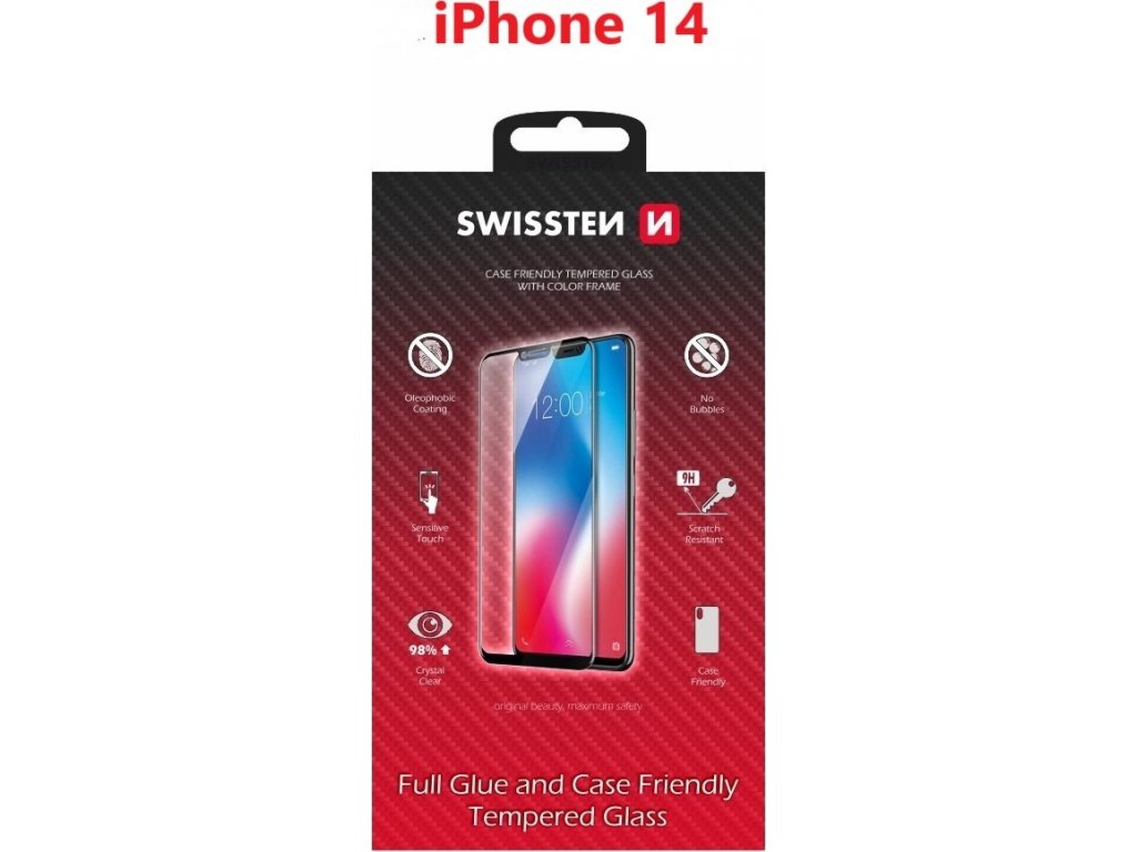 SKLO SWISSTEN FULL GLUE, COLOR FRAME, CASE FRIENDLY PRO APPLE IPHONE 14 ČERNÉ