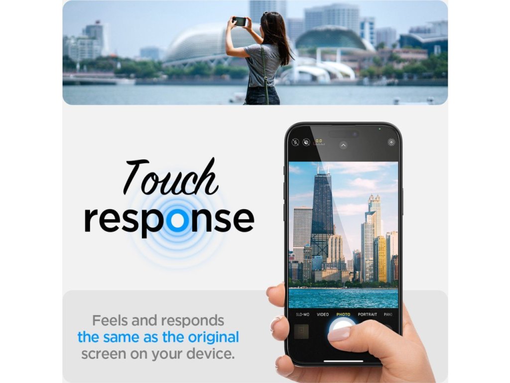 Tvrzené sklo ze série "EZ Fit" od Spigenu je chráněn montážním rámečkem dokonale vyříznutým k přední části telefonu, díky kterému jej můžete na obrazovce perfektně umístit. Výrobce zjednodušil způsob montáže natolik, že je pro každého uživatele plně intuitivní.