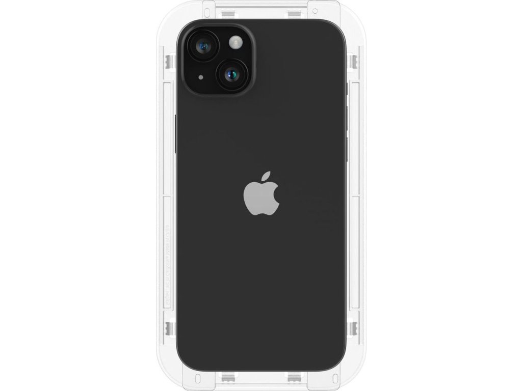 Kvalitní tvrzené 5D sklo pro Apple iPhone 15 Plus, které ochrání celý displej až k jeho okrajům s instalačním aplikátorem pro jednoduchou a přesnou aplikaci skla bez prachu.