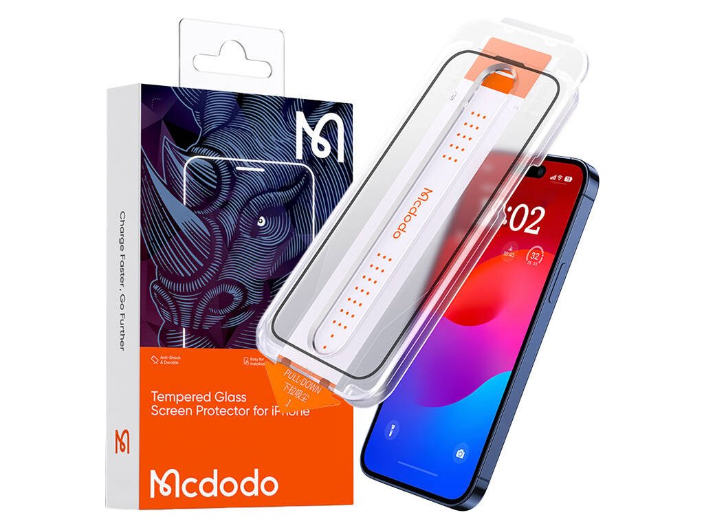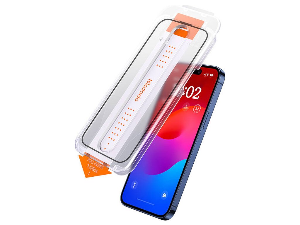 Mcdodo PF-5363 Tvrzené sklo pro iPhone 15 Pro Max s instalačním aplikátorem proti prachu