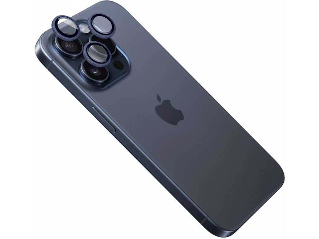 Ochranná skla čoček fotoaparátů FIXED Camera Glass pro Apple iPhone 15 Pro/15 Pro Max, tmavě modrá