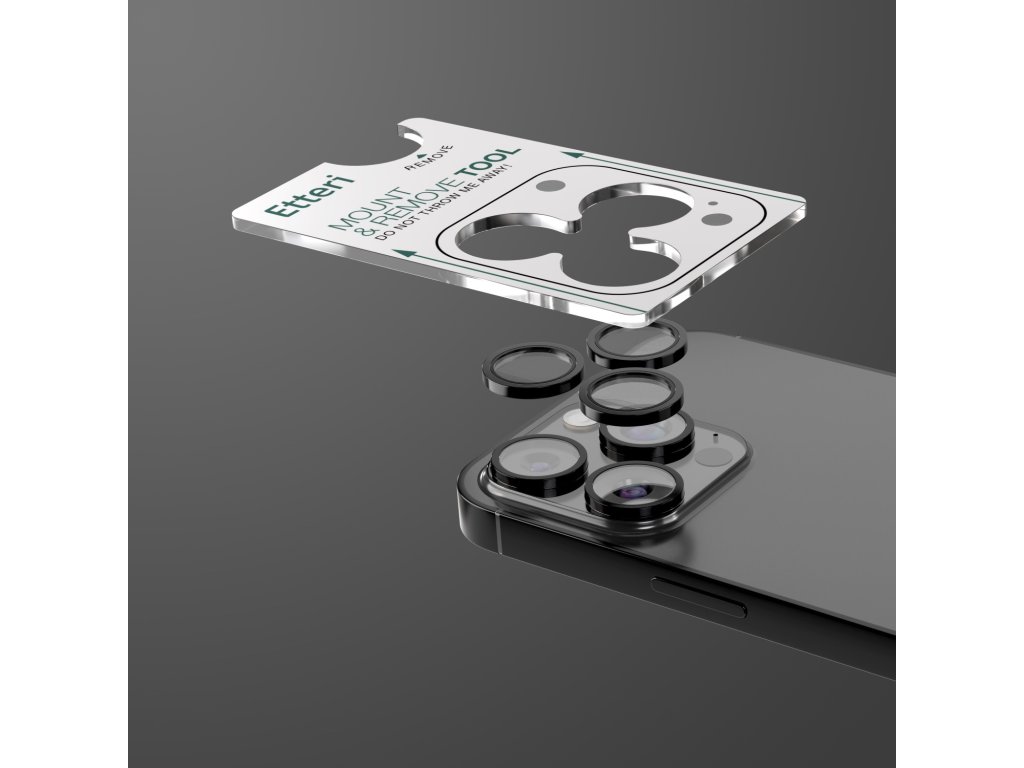 Ochranný kryt Etteri na objektiv fotoaparátu pro iPhone 16 Pro / 16 Pro Max, černý