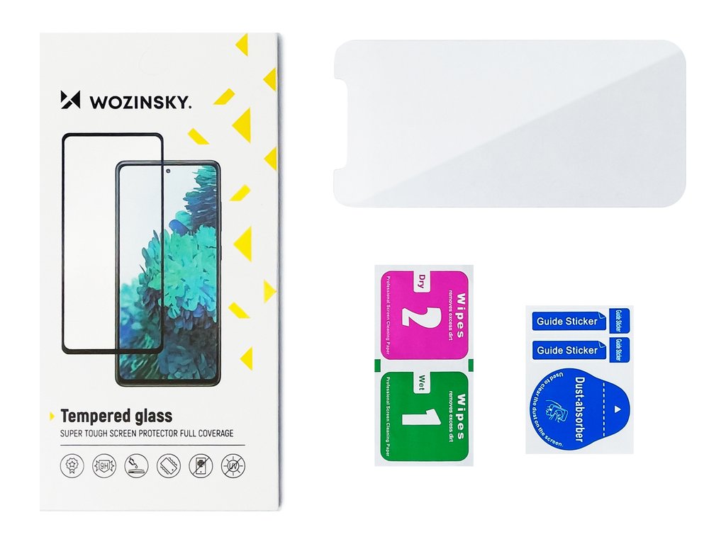 Sada Wozinsky Tempered Glass obsahuje vše potřebné pro správnou aplikaci: sklo, hadřík na čištění obrazovky a samolepku na odstranění prachu. Díky tomu je instalace nejen snadná, ale i komplexní, takže si můžete okamžitě užívat ochrany.