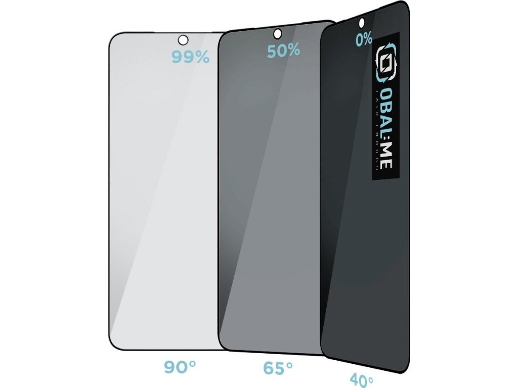 OBAL:ME tvrzené sklo je klíčovým prvkem k dlouhé životnosti a ochrany vašeho telefonu. S tloušťkou 0,4mm je sklo takřka neznatelné na dotek a tak plocha obrazovky neztrácí na citlivosti. Vyvážené množství lepidla na vnitřní straně zajišťuje velmi snadnou a rychlou instalaci. Naše sklo na telefon nabízí vlastnosti, které ho dělají nepostradatelným: Ochrana soukromí Váš osobní prostor si zaslouží tu nejlepší ochranu. Privacy tvrzené sklo udržuje váš displej v bezpečí před nežádoucími pohledy. Výrazně omezuje pozorovací úhly, takže obsah vašeho zařízení je viditelný pouze při přímém pohledu 90° - 99% propustnost 65° - 50% propustnost 40° - 0% propustnost Ochrana displeje OBAL:ME sklo je navrženo tak, aby ochránilo Vaši obrazovku jak při běžném používaní, tak před nečekanými událostmi jako jsou nárazy a pády. Odolnost vůči otiskům Díky pokročilé technologii našeho skla si užijete krystalicky čistý obraz a minimalizované otisky prstů. Ochrana očí Chráníme nejen váš telefon, ale i vaše oči. OBAL:ME sklo redukuje nepříjemné záření a ochrání vaše oči před únavou. Lepící vrstva po celé ploše skla Díky rovnoměrnému a pevnému přilnutí na obrazovku si můžete být jisti, že sklo zůstane na svém místě a nebude ovlivňovat citlivost dotykového displeje. Tvrdost 9H Tvrdost 9H je označení pro odolnost povrchu, který je odolný vůči poškrábání. Tento termín se používá k popisu materiálů, které jsou vhodné pro ochranu displejů a povrchů elektronických zařízení. Rozdíl mezi 2.5D a 5D ochrannými skly spočívá v tvaru a rozsahu zakrytí obrazovky. 2.5D nemá zakřivené hrany na obvodu a pokrývá plochou část obrazovky, zatímco 5D sahá až do krajů displeje, což poskytuje více ochrany a lepší vzhled. Obsah balení: - tvrzené sklo OBAL:ME - vlhčený ubrousek pro dokonalé vyčištění displeje - hadřík z mikrovlákna - samolepky k odstranění zbývajích nečistot