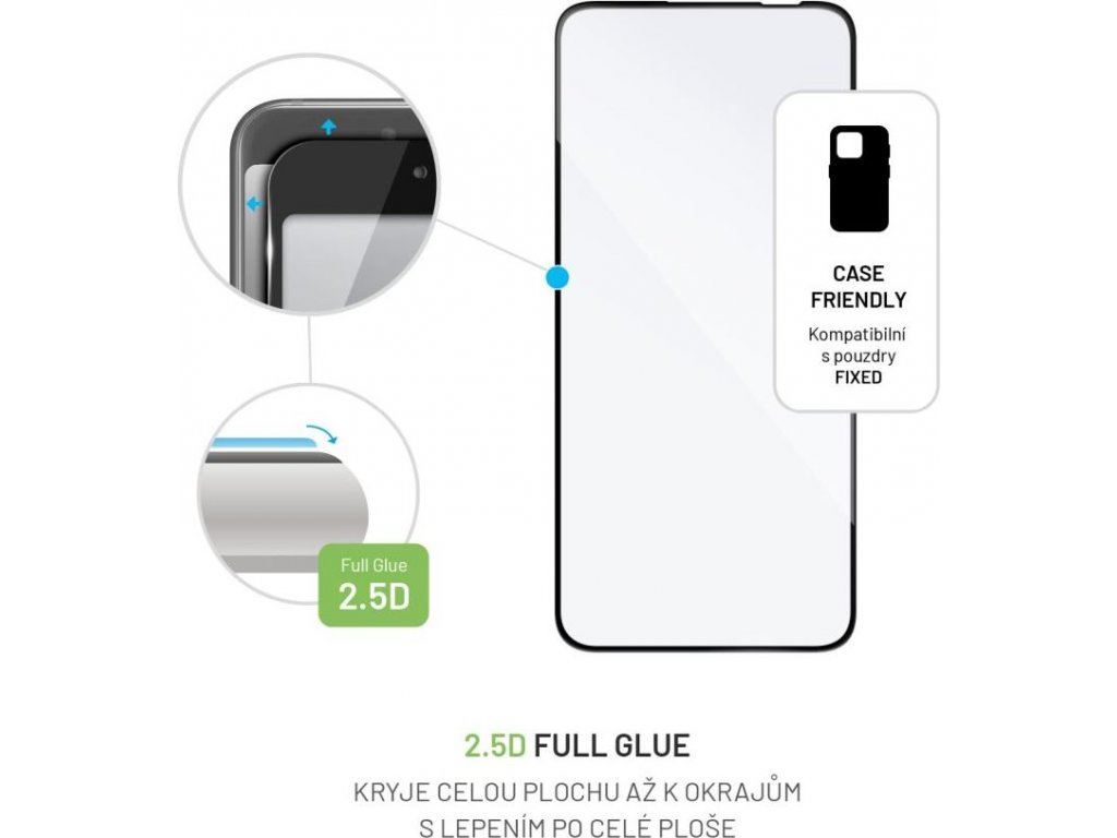 Vysoce kvalitní tvrzené sklo FIXED Full-Cover s lepením po celé ploše zajistí maximální ochranu displeje vašeho mobilního telefonu. Zabráníte tak případnému poškození v podobě prasklého nebo poškrabaného displeje. Sklo díky 2,5D designu kryje celou plochu displeje až k okrajům. Výhodou oproti běžným 2,5D sklům je lepení po celé ploše displeje telefonu, sklo tak lépe přilne k displeji a perfektně drží a netvoří se mapy. Navíc má i lepší citlivost dotyku. V balení najdete vše potřebné pro snadnou instalaci. Se sklem FIXED Full-Cover získá váš telefon kompletní ochranu displeje před nárazy, škrábanci i nečistotami.Vlastnosti: