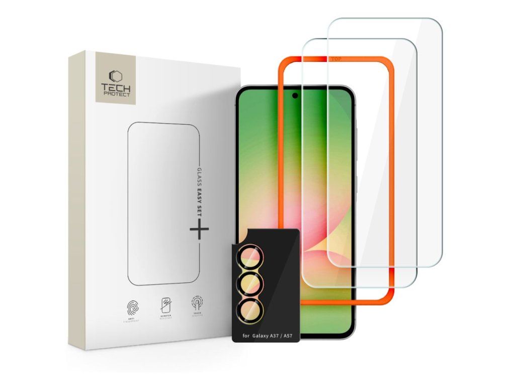 Ochranná sada Tech-Protect Supreme Easy Set+ představuje kompletní řešení pro bezpečí vašeho telefonu Samsung Galaxy A57 5G. Tato komplexní sada z frézovaného tvrzeného skla o tvrdosti 9H poskytuje maximální ochranu nejen displeji, ale i čočce fotoaparátu před škrábanci a prasklinami.