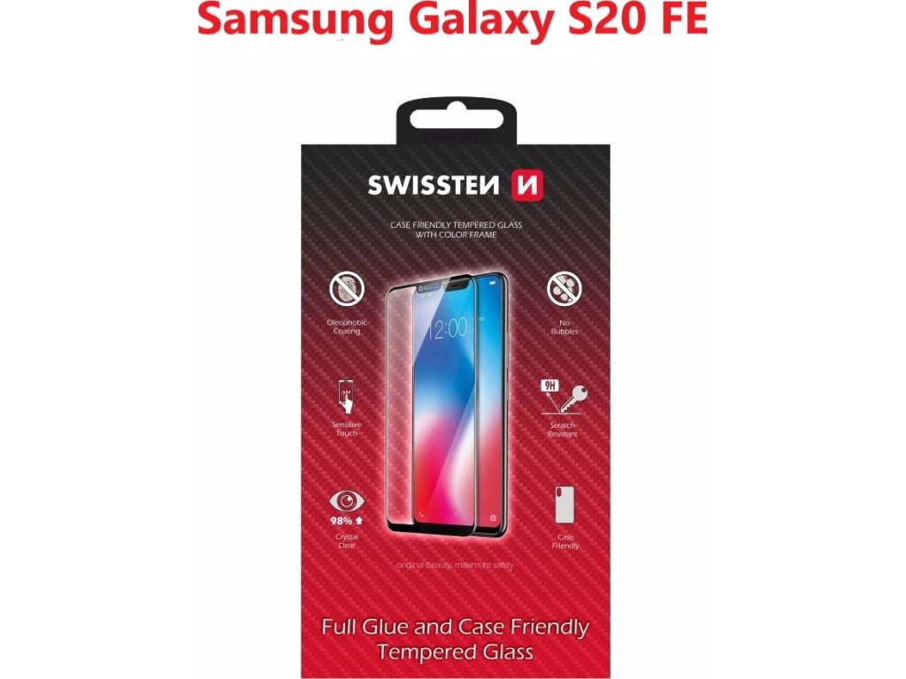 SKLO SWISSTEN FULL GLUE, COLOR FRAME, CASE FRIENDLY SAMSUNG G780 GALAXY S20 FE ČIERNE
