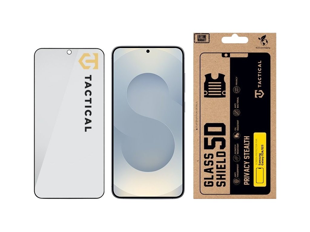 GLASS SHIELD PRIVACY STEALTH Ochranné sklo Tactical Glass Shield Privacy Stealth chrání Tvé zařízení před nejdrsnějšími střety a obsah displeje před šmíráky. Testováno na bojišti každodenního dění, stvořeno pro ty nejnáročnější scénáře! FLEXIBILNÍ TVRDOST Ochranné sklo Tactical Glass Shield Privacy Stealth odolává a zároveň pohlcuje nárazy, čímž poskytuje nepřekonatelnou odolnost při zachování flexibility, která je potřebná pro výkon v těch nejnáročnějších podmínkách. Je to prověřený bojovník, který vydrží déle než většina ochrany na trhu. NENÍ SKLO JAKO SKLO Toto není jen obyčejné sklo - je to vícevrstvá obranná jednotka. Hlavní vrstva s technologií Privacy Mode, chrání obsah displeje před šmíráky. To znamená, že kdokoliv vedle vás neuvidí obsah vašeho displeje. Díky oleofobní vrstvě a vrstvě proti otiskům prstů a nárazům zůstane tvůj displej čistý a chráněný před každodenními nárazy, rozlitím nebo poškrábáním. Jemně leštěné hrany a precizní vrstva AB lepidla zajišťují vzduchotěsné přilnutí k tvému zařízení, aniž by zanechaly slabá místa, kam by se mohl dostat prach nebo nečistoty. Každé sklo je na míru přizpůsobeno konkrétnímu modelu zařízení, zaručující dokonalou ochranu. NEODOLATELNĚ ODOLNÝ Tento kousek není jen pro parádu. U nás v Tactical dbáme na to, aby věci něco vydržely. Ochranné sklo bylo podrobeno tvrdým podmínkám a při výrobě jsme použili velice odolné materiály a aplikovali nejnovější technologie pro co nejlepší výstup ochrany. Je to sklo, na které se můžeš spolehnout i v těch nejextrémnějších podmínkách. I proto se na toto sklo vztahuje program doživotní záruky.* Viz podmínky programu doživotní záruky Tactical. BE ECO My v Tactical máme rádi přírodu. Všechny naše produkty jsou balené do ECO krabiček z recyklovaného papíru tak, aby co nejméně zatěžovaly životní prostředí. Mysli takticky!