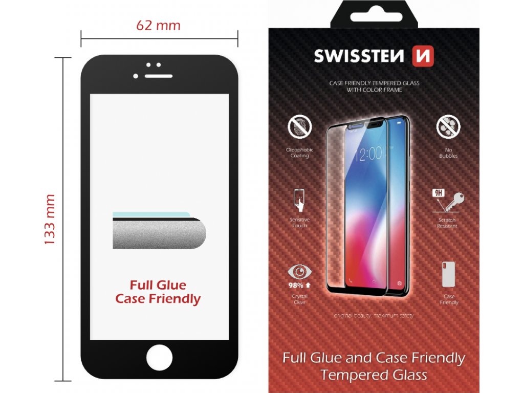 SKLO SWISSTEN FULL GLUE, COLOR FRAME, CASE FRIENDLY PRO APPLE IPHONE 6/6S ČERNÉ