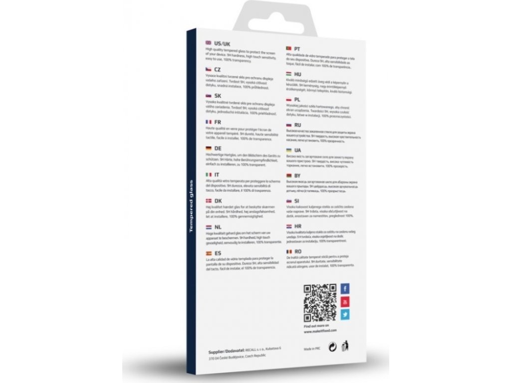 Spodní vysoce adhesivní část s tenkou silikonovou vrstvou, která výrazně zjednodušší aplikaci. Sklo je opatřeno speciální oleofobní vrstvou - vysoká citlivost. Tvrdost 9H. Tloušťka 0,3 mm. Zaoblené hrany.