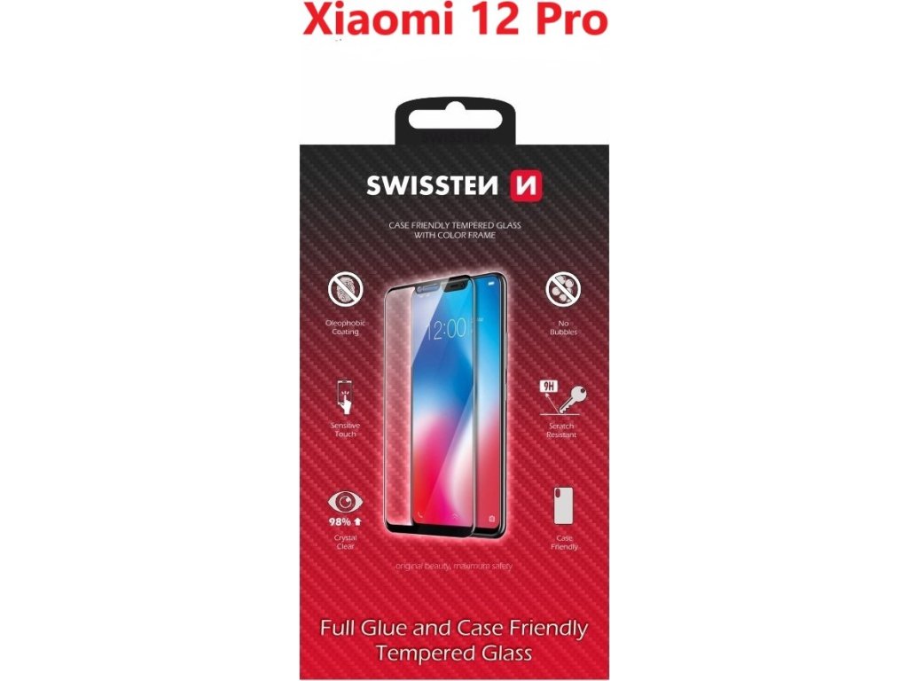 SKLO SWISSTEN FULL GLUE, COLOR FRAME, CASE FRIENDLY PRO XIAOMI 12 PRO ČERNÉ