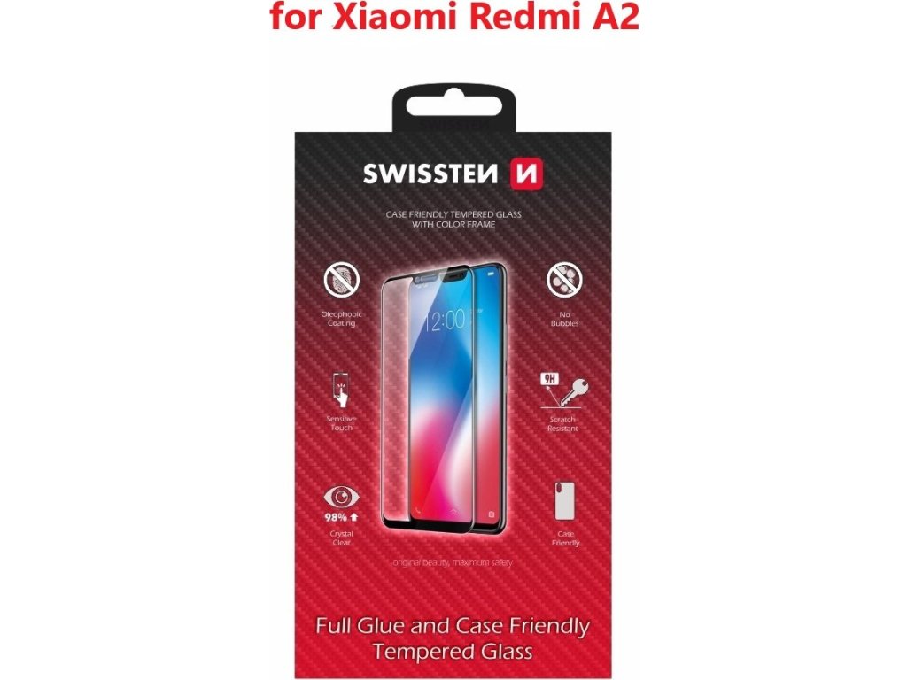 SKLO SWISSTEN FULL GLUE, COLOR FRAME, CASE FRIENDLY PRO XIAOMI REDMI A2 ČERNÉ