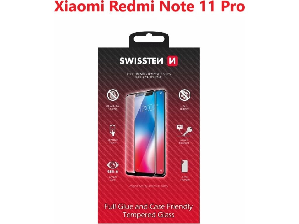 SKLO SWISSTEN FULL GLUE, COLOR FRAME, CASE FRIENDLY PRO XIAOMI REDMI NOTE 11 PRO ČERNÉ