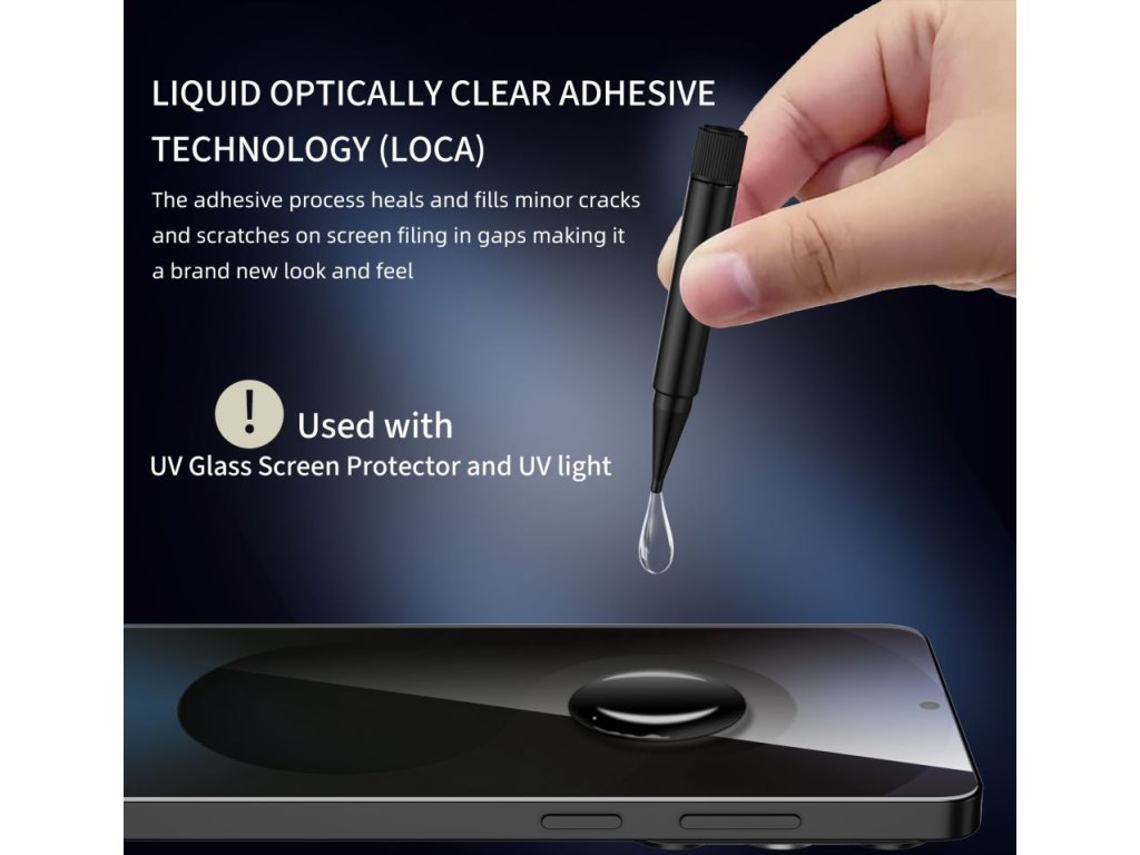Tech-Protect Glass UV+ je tvrzené sklo s UV vrstvou. Technologie lepidla vytvrzovaného ultrafialovým světlem zajišťuje, že sklo dokonale přilne k obrazovce a zachovává plnou průhlednost a citlivost na dotyk. Sada obsahuje dva kusy skla a UV lampu, což zajistí, že vaše zařízení bude chráněno od prvního dne.