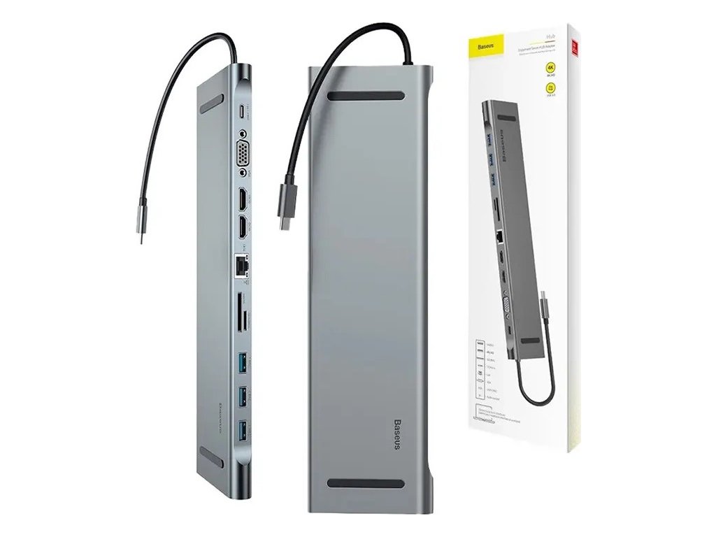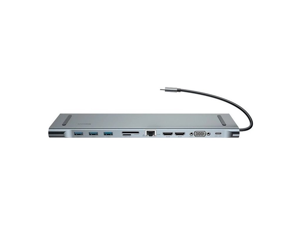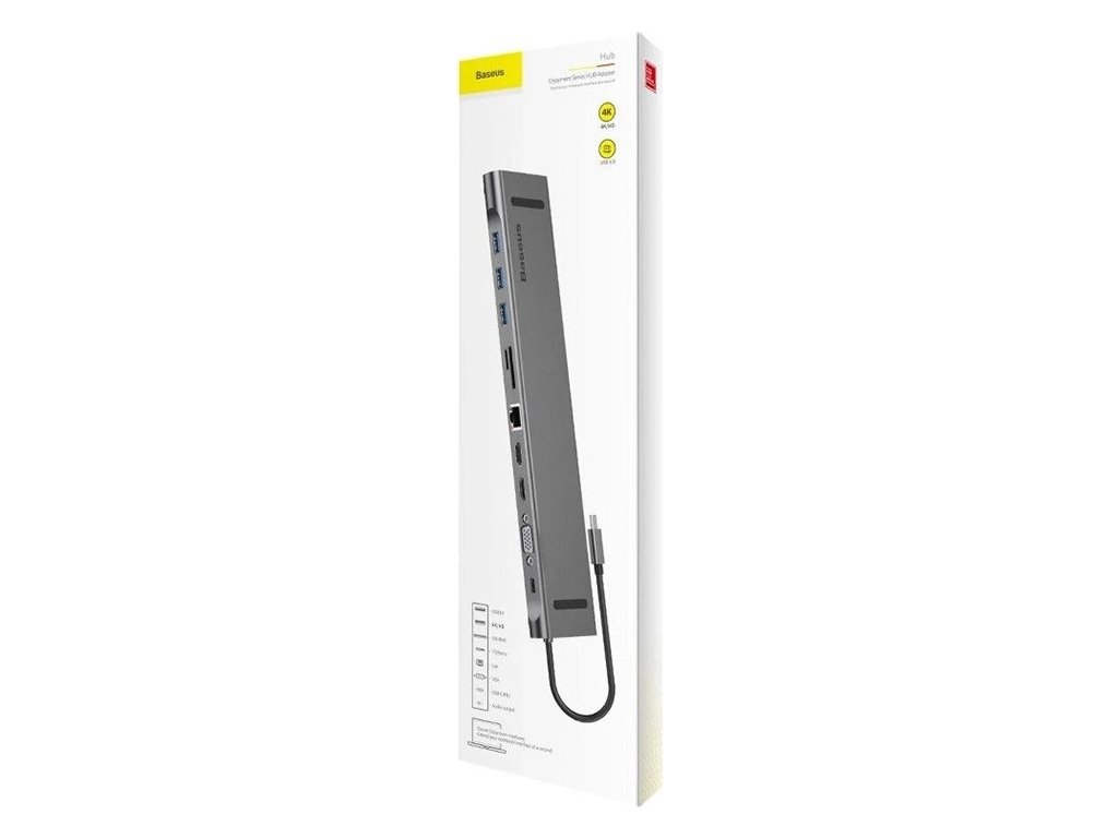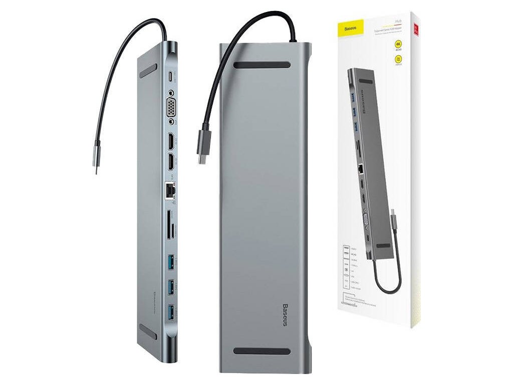 Baseus Enjoyment Series dokovací stanice HD HUB typu C(PD/HD4K*2/VGA/RJ45/SD/TF/USB*3/Audio*1/Stand)Tmavě šedý