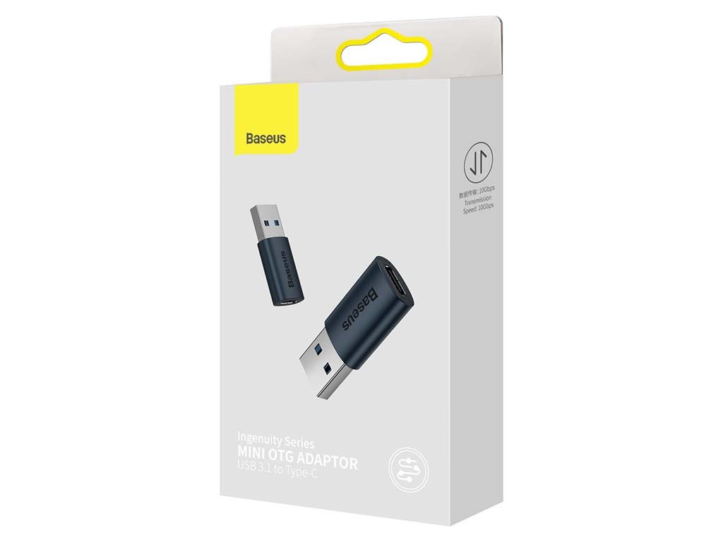 Malý adaptér USB-A (USB 3.1) na USB-C od společnosti Baseus je kompatibilní s celou řadou zařízení a umožňuje přenášet soubory rychlostí až 10 Gb/s. Umožňuje také rychlé PD nabíjení (pomocí příslušného kabelu, který je nutné zakoupit zvlášť). Zařízení je mimořádně odolné, a přitom kompaktní - můžete ho mít vždy po ruce.