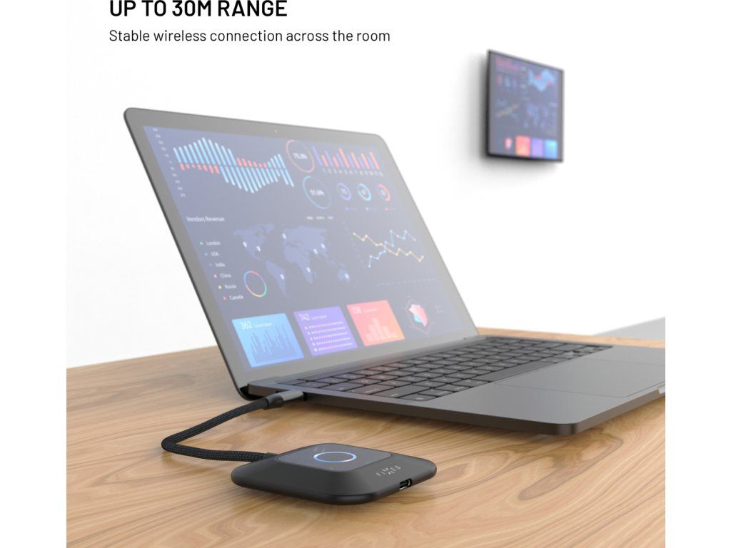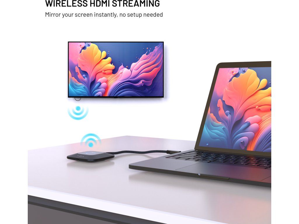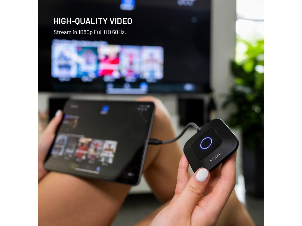 Bezdrátový HDMI adaptér FIXED AirLink umožní snadné streamování obrazu z notebooku na televizi, monitor či projektor bez nutnosti dalších kabelů nebo instalace aplikací a ovladačů. Stačí zapojit kompaktní vysílač do USB-C portu notebooku či jiného zařízení s funkcí přenosu dat, přijímač připojit do HDMI a USB portu zobrazovacího zařízení a jedním stiskem tlačítka obě části spárovat. Během okamžiku dojde k propojení a již můžete využívat plynulého zrcadlení obrazu. Adaptér podporuje rozlišení Full HD 1080p při 60 Hz a nabízí režim zrcadlení i rozšířené plochy, což oceníte jak při práci, tak zábavě. Díky minimální latenci v řádu maximálně 10 milisekund je obraz přenášen prakticky v reálném čase, bez viditelného zpoždění při sledování videí, filmů nebo prezentací. FIXED AirLink zároveň umožňuje rychlé průchozí nabíjení přes USB-C port s podporou Power Delivery o výkonu až 100W, takže můžete pohodlně sdílet a zároveň notebook napájet. Adaptér je kompatibilní s Windows, macOS, iOS i Android zařízeními, která mají USB-C nebo Thunderbolt 3/4 port s podporou DisplayPort Alt Mode. Dosah přenosu činí 30 metrů a odolný 20 cm opletený kabel zajišťuje dlouhou životnost. S FIXED AirLink přenášejte obraz zcela bezstarostně a kdekoliv.
