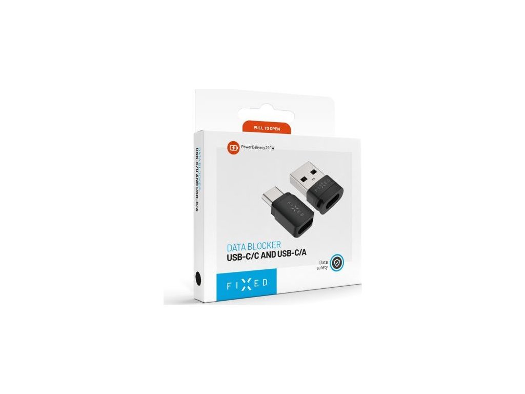 Hliníkový USB-C/C a USB-C/U Data blocker 2in1 FIXED, černý
