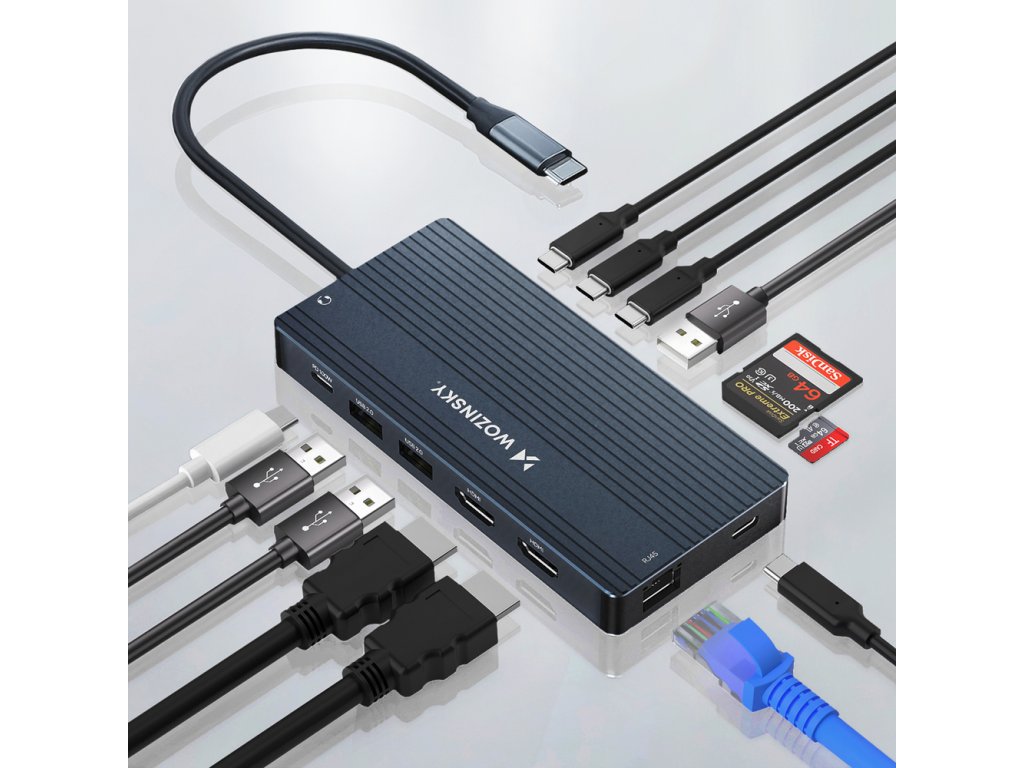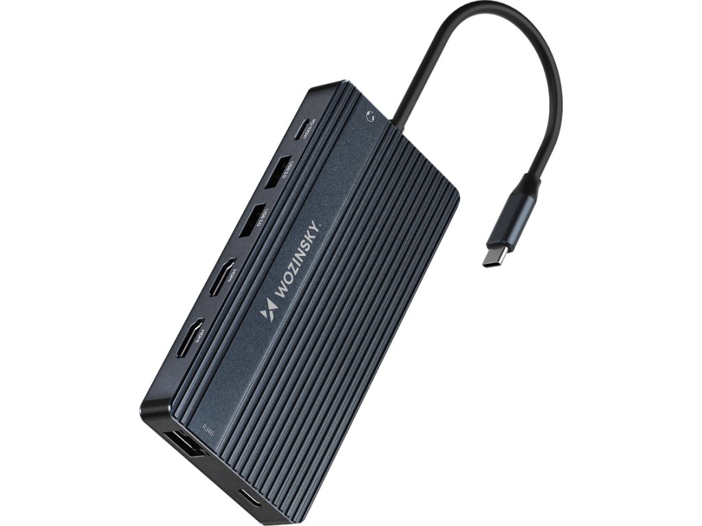Wozinsky WDS03Y5S je skutočné riadiace centrum pre vašu kanceláriu - kompaktný, ale výkonný 14-v-1 USB-C hub, ktorý podporuje až tri monitory s rozlíšením až 4K/60Hz, ultrarýchlym prenosom dát až 10 Gbps a nabíjaním s výkonom až 100W. Vďaka portom USB-C, HDMI, DisplayPort, čítačkám kariet SD/TF a audio a ethernetovým konektorom je zariadenie ideálne pre stacionárnu, hybridnú a mobilnú prácu. Hliníkové puzdro nielen dobre odvádza teplo, ale poskytuje aj elegantný a odolný vzhľad. Ide o riešenie typu plug & play - nie je potrebné inštalovať žiadne ovládače, pripravené na prácu ihneď po pripojení. Nenahraditeľné pri každodenných úlohách - od prenosu dát, cez prezentácie až po nabíjanie notebooku.