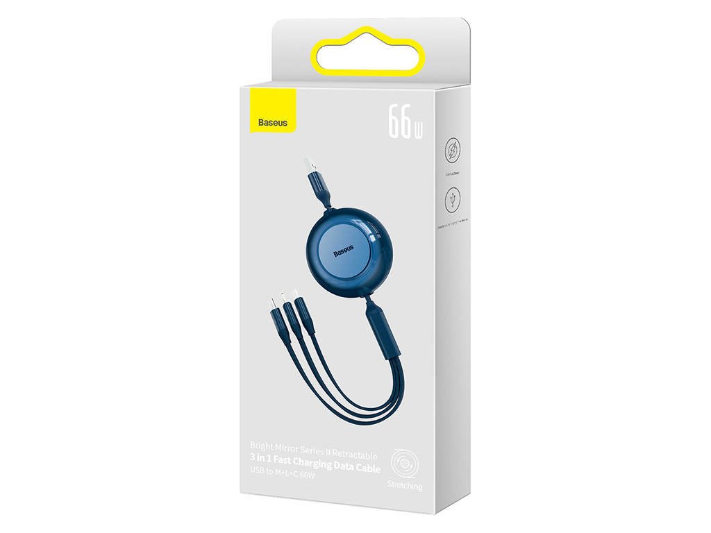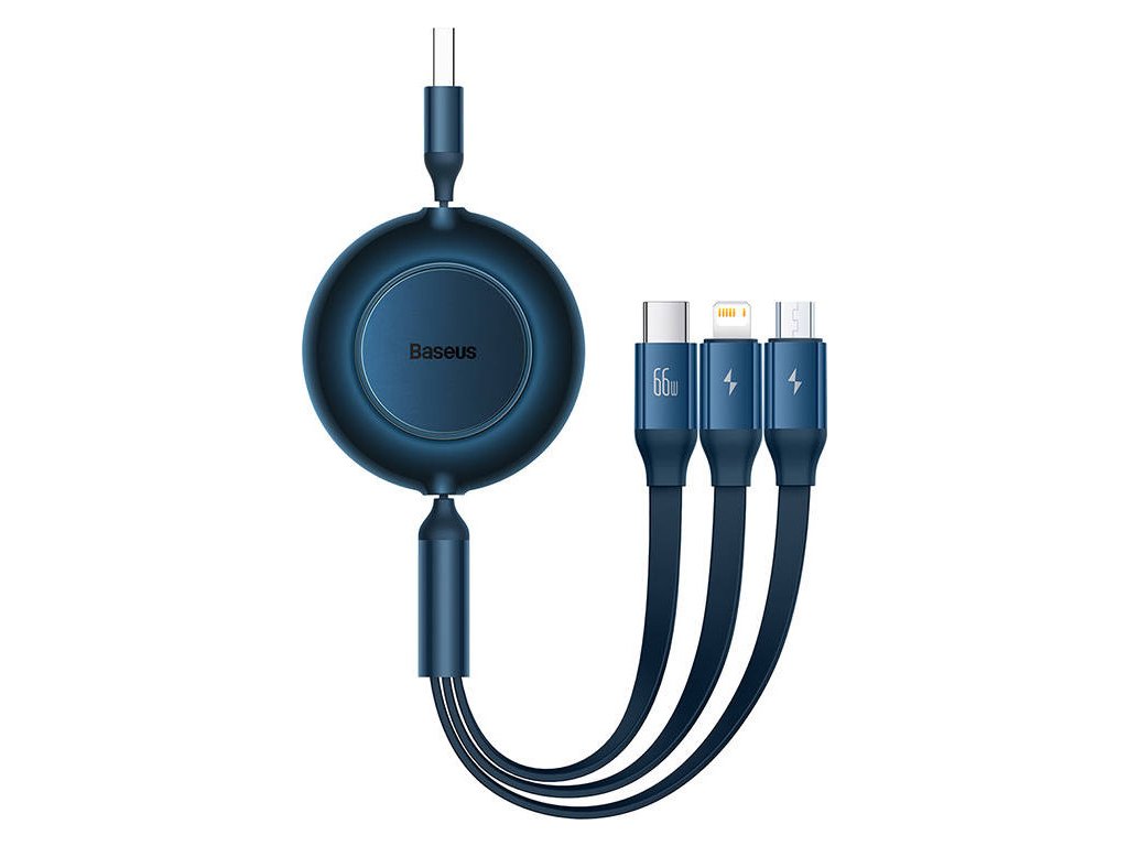 Baseus Bright Mirror 3, USB kábel 3 v 1 pre micro USB/USB-C/Lightning 66W/2A 1,1 m (modrý)