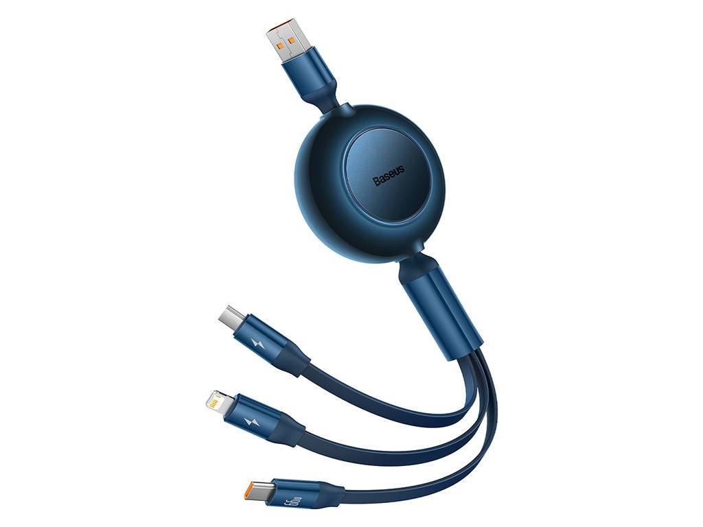 Odolný kábel Baseus Rapid 3v1 je univerzálny kábel s rôznymi konektormi, ktoré umožňujú rýchle nabíjanie v troch zariadeniach.