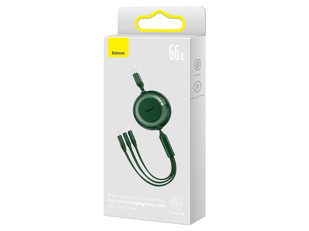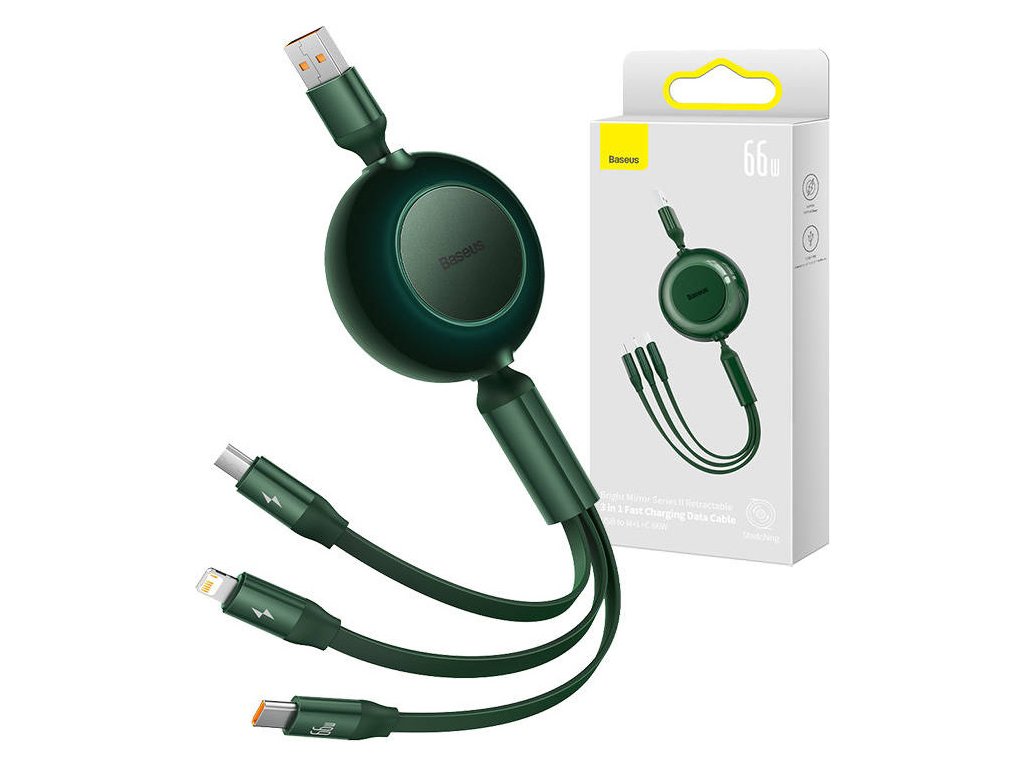 Baseus Bright Mirror 3, USB kábel 3 v 1 pre micro USB/USB-C/Lightning 66W/2A 1,1 m (zelený)