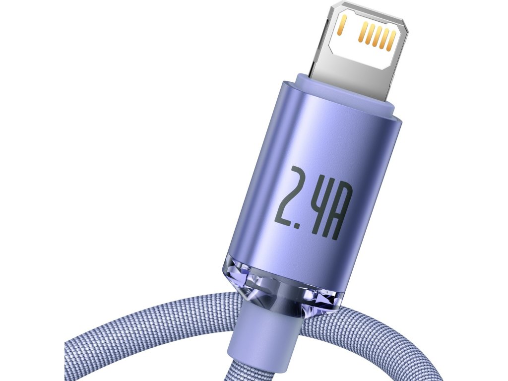 Kabel USB pro Lightning Baseus Crystal, 2,4 A, 1,2 m (fialový)