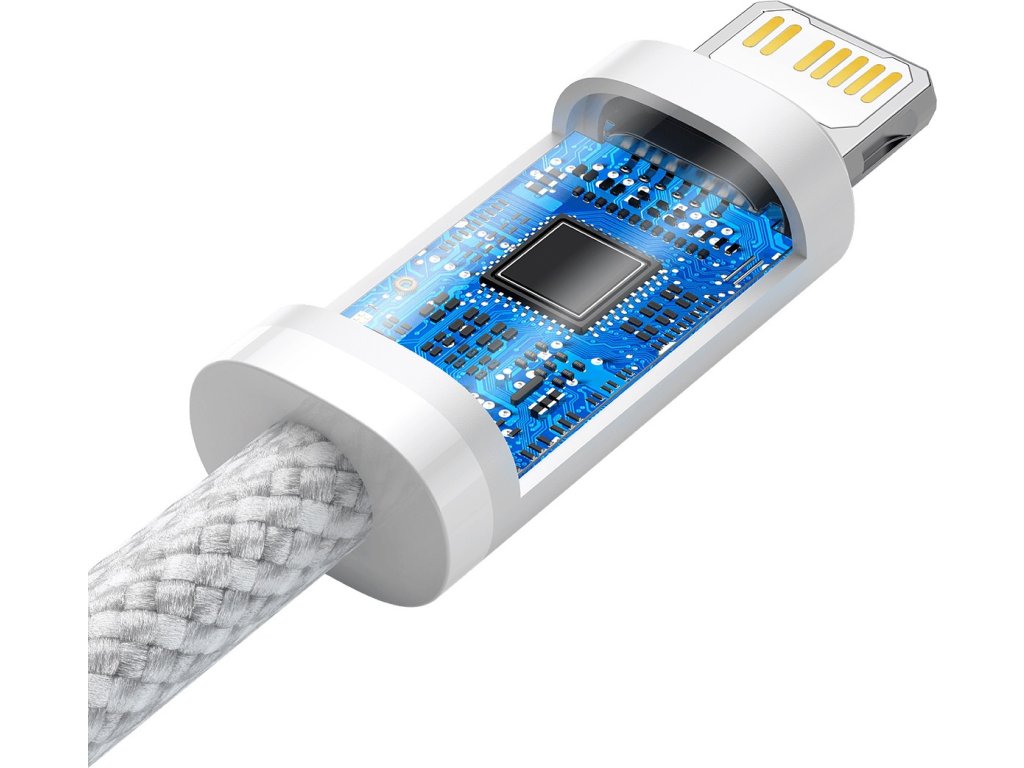 Kábel je vyrobený z vysoko kvalitných produktov, ako sú prvky ABS odolné proti oxidácii a vyblednutiu. Gumové časti chránia porty a kovové koncovky telefónu. Nylonové opletené puzdro chráni kábel z vonkajšej strany a zabraňuje deformácii a zlomeniu v dôsledku ohýbania. Súčasťou sady je suchý zips, ktorým môžete kábel po zložení uzavrieť. Kompatibilný so zariadeniami Apple radu 12 až 6S. Kábel je v súlade s protokolom 18W a 20W.