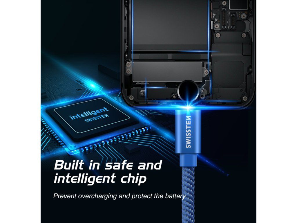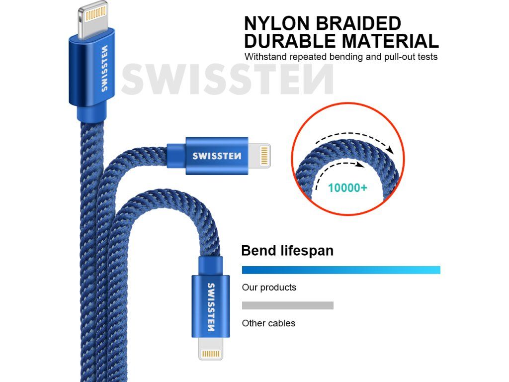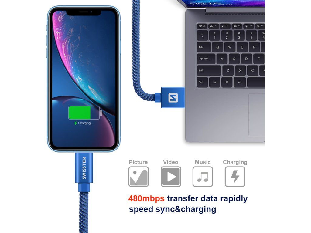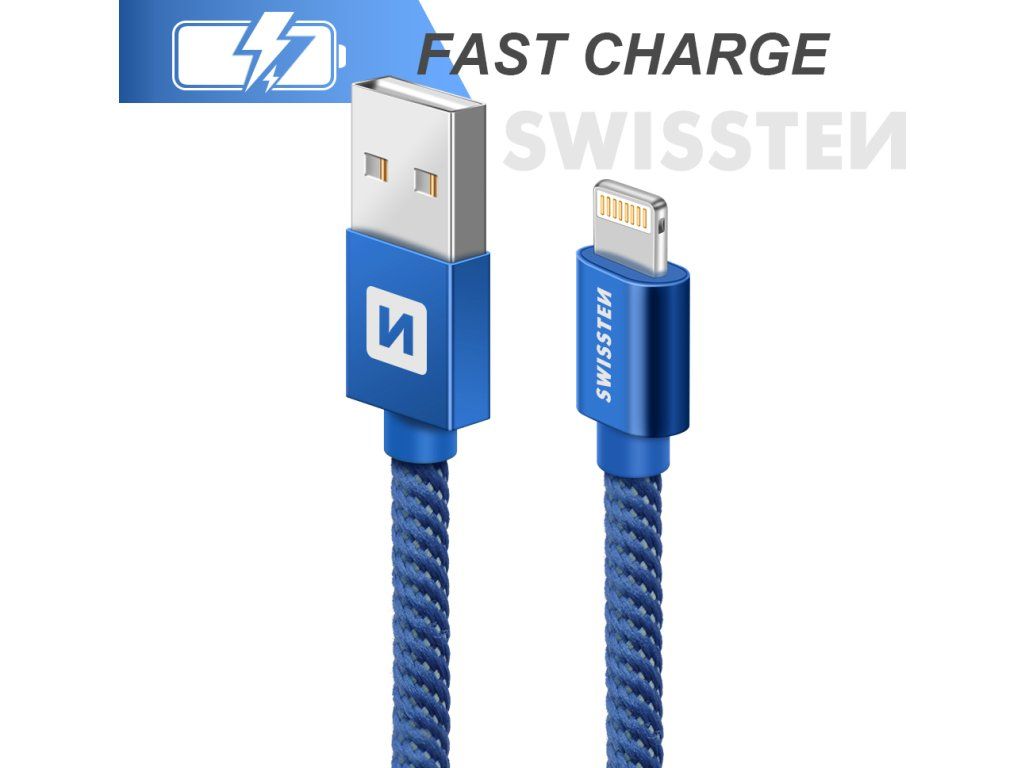 DATOVÝ KABEL SWISSTEN TEXTILE USB / LIGHTNING 1,2 M MODRÝ