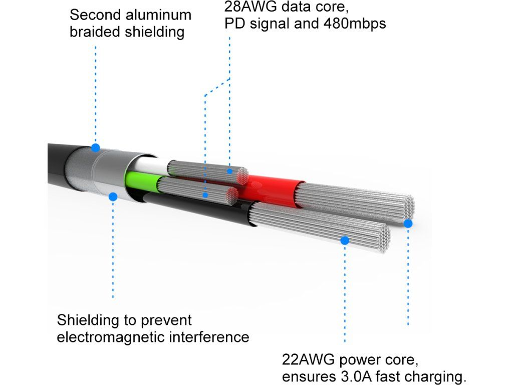 Spolehlivý kabel pro každodenní nabíjení a přenos dat s konektory USB-C na USB-C a výkonem až 60W.