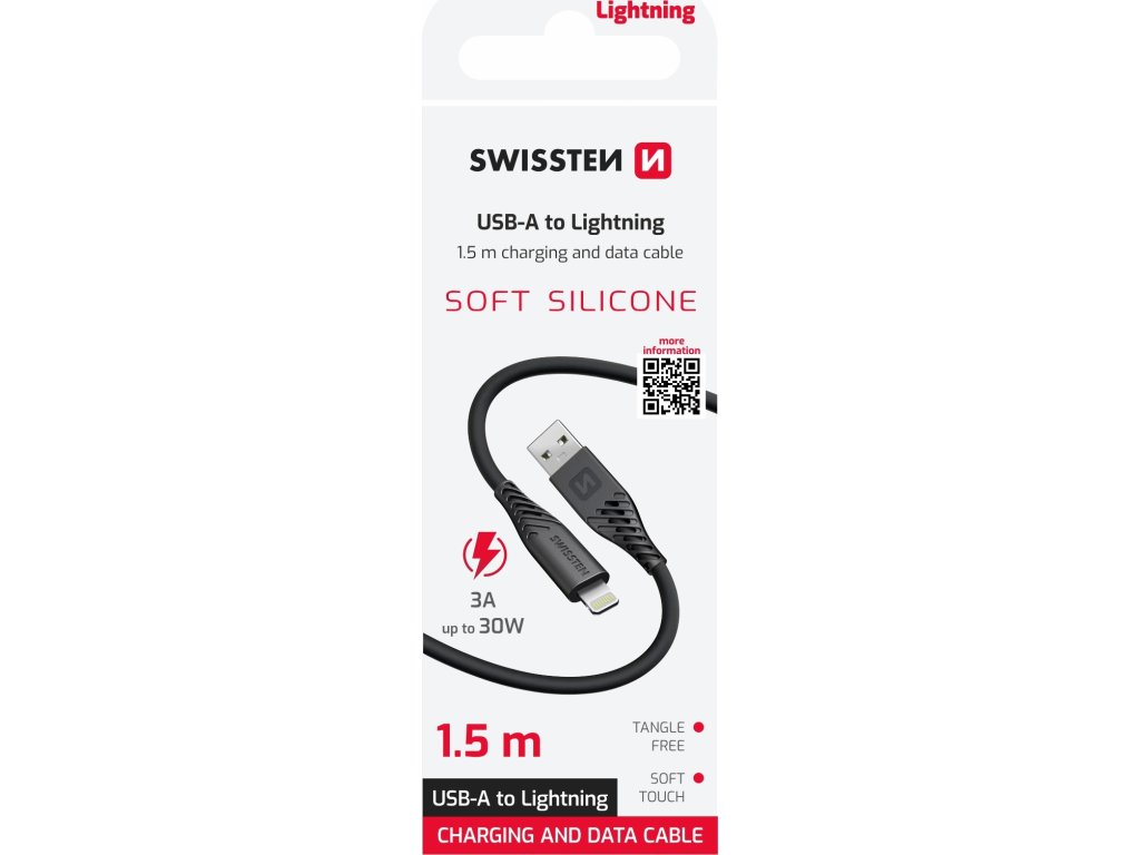 DATOVÝ KABEL SWISSTEN SOFT SILICONE USB / LIGHTNING 1,5 M 30W ČERNÝ