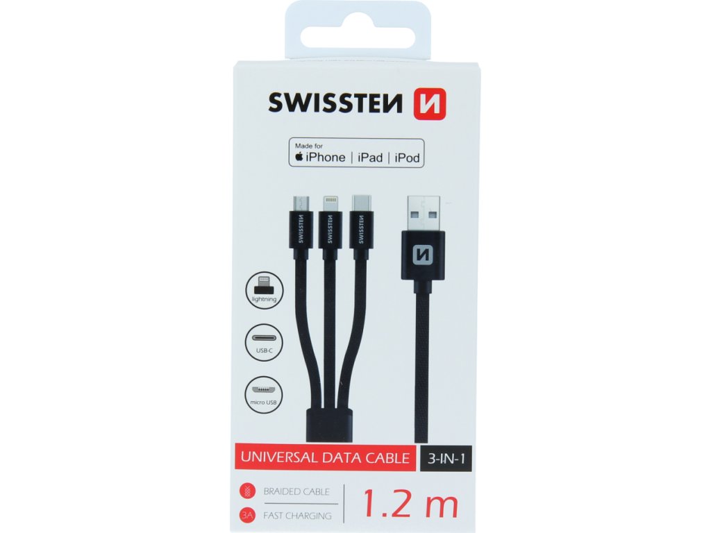 DATOVÝ KABEL SWISSTEN TEXTILE 3in1 MFi 1,2 M ČERNÝ (Lightning, USB-C, Micro USB)