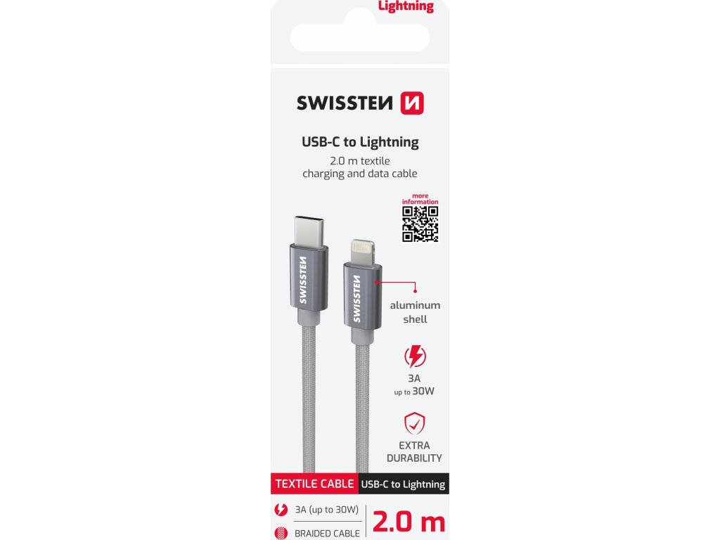 DATOVÝ KABEL SWISSTEN TEXTILE USB-C / LIGHTNING 2,0 M STŘÍBRNÝ
