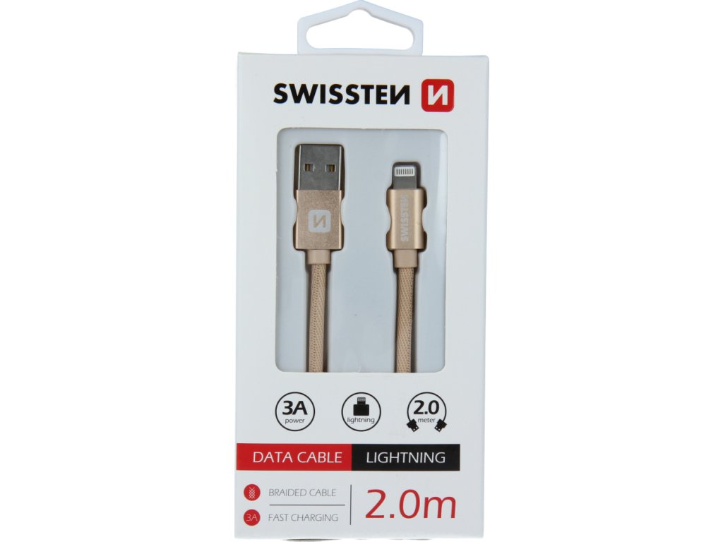 DATOVÝ KABEL SWISSTEN TEXTILE USB / LIGHTNING 2,0 M ZLATÝ