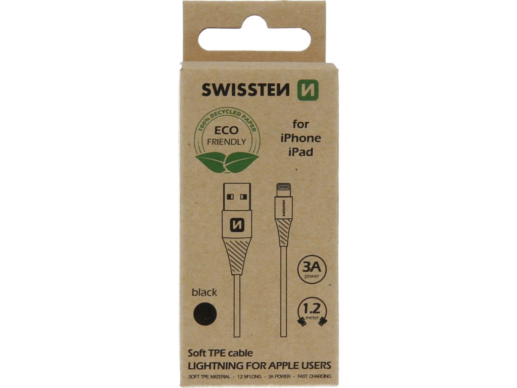 DATOVÝ KABEL SWISSTEN USB/LIGHTNING ČERNÝ 1,2M (ECO BALENÍ)