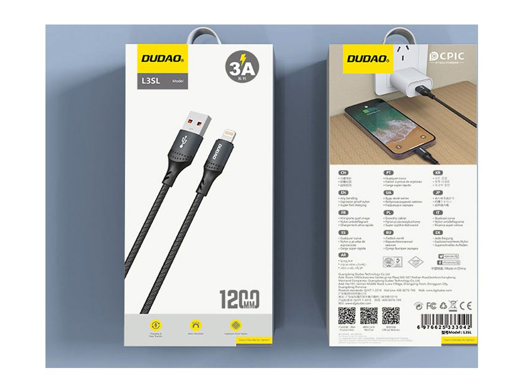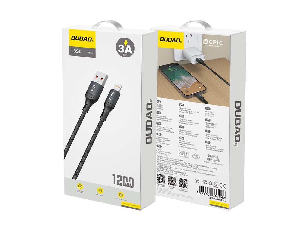 Nejdůležitější výhody kabelu Dudao 3A 30W L3SL USB-A - Lightning v opletení 1,2 m - černé: