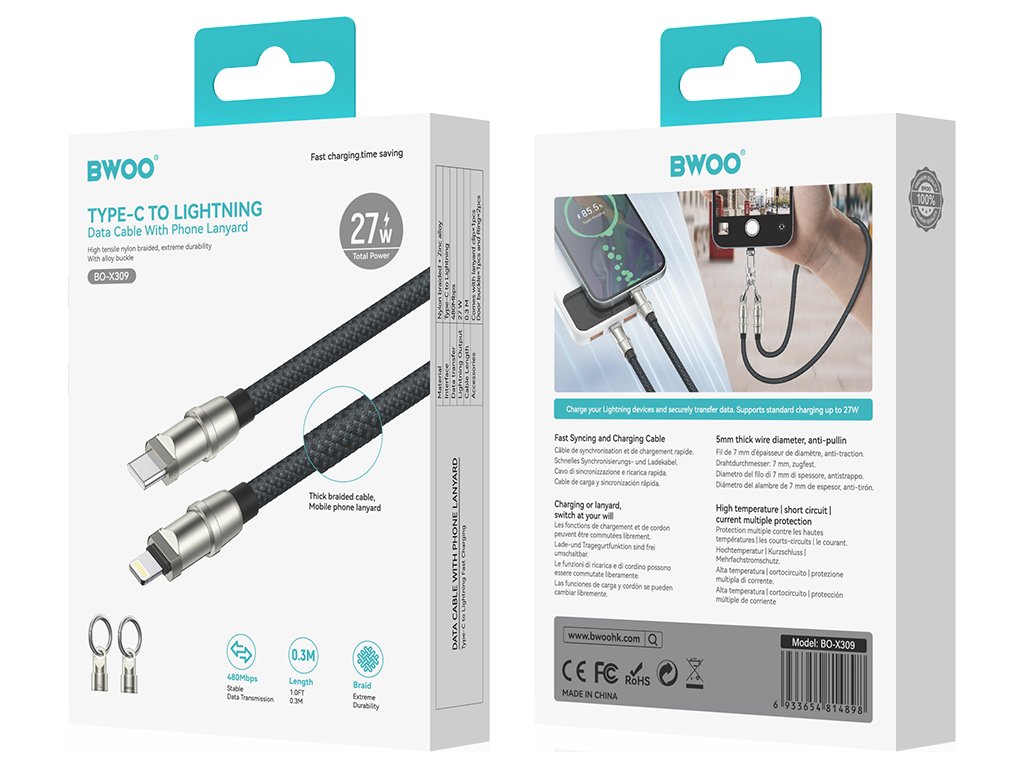 Kabel BWOO Lanyard USB-C - Lightning 1,2 m 27W s poutkem