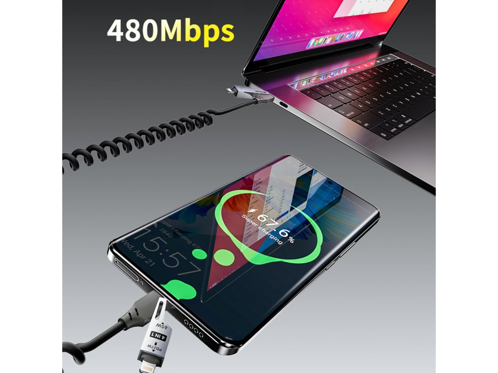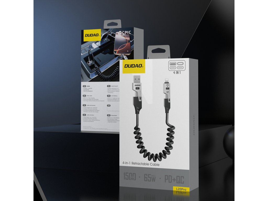 Dudao L20 Pro je multifunkční kabel 4 v 1, který umožňuje rychlé nabíjení a přenos dat pro více zařízení. Díky dvěma vstupům (USB-A a USB-C) a dvěma výstupům (Lightning a USB-C) je ideální pro domácnost, kancelář i cesty. Spirálový, flexibilní design zabraňuje zamotávání a zajišťuje pohodlné používání. Kabel s výkonem až 65 W podporuje rychlé nabíjení v souladu s oblíbenými protokoly PD a QC. S délkou 150 cm nabízí pohodlí v každé situaci a eliminuje nutnost nosit s sebou více kabelů.