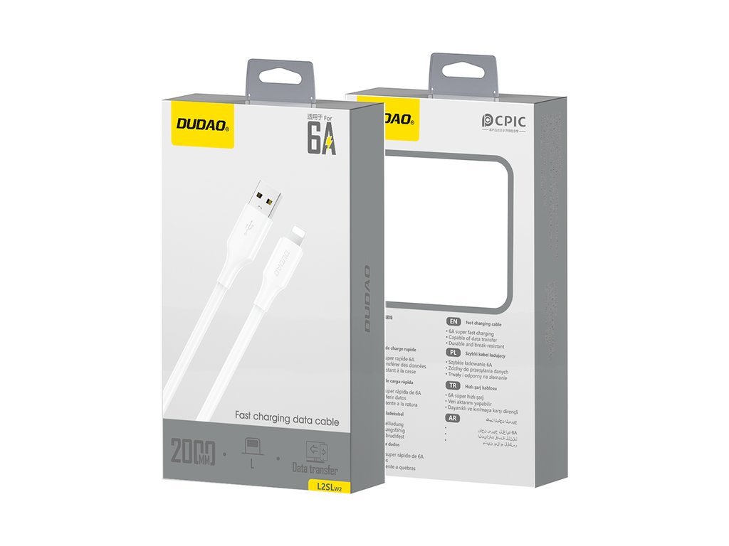 Kabel Dudao L2sL USB-A - Lightning 6 A 1,2 m - bílý