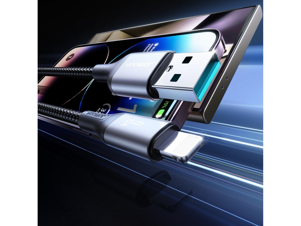 Kabel Joyroom S-A28 Flash Series je spolehlivý kabel pro zařízení Apple, který kombinuje rychlé nabíjení s odolnou konstrukcí. Podporuje proud až 3 A, což vám umožňuje rychle dobít telefon, zatímco rychlost přenosu dat 480 Mbps zajišťuje efektivní synchronizaci. Hliníkové konektory a opletený nylonový návlek zajišťují dlouhou životnost a odolnost proti ohybu. Délka 1 metru je ideální pro domácí i cestovní použití.