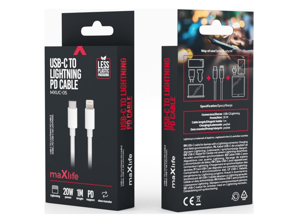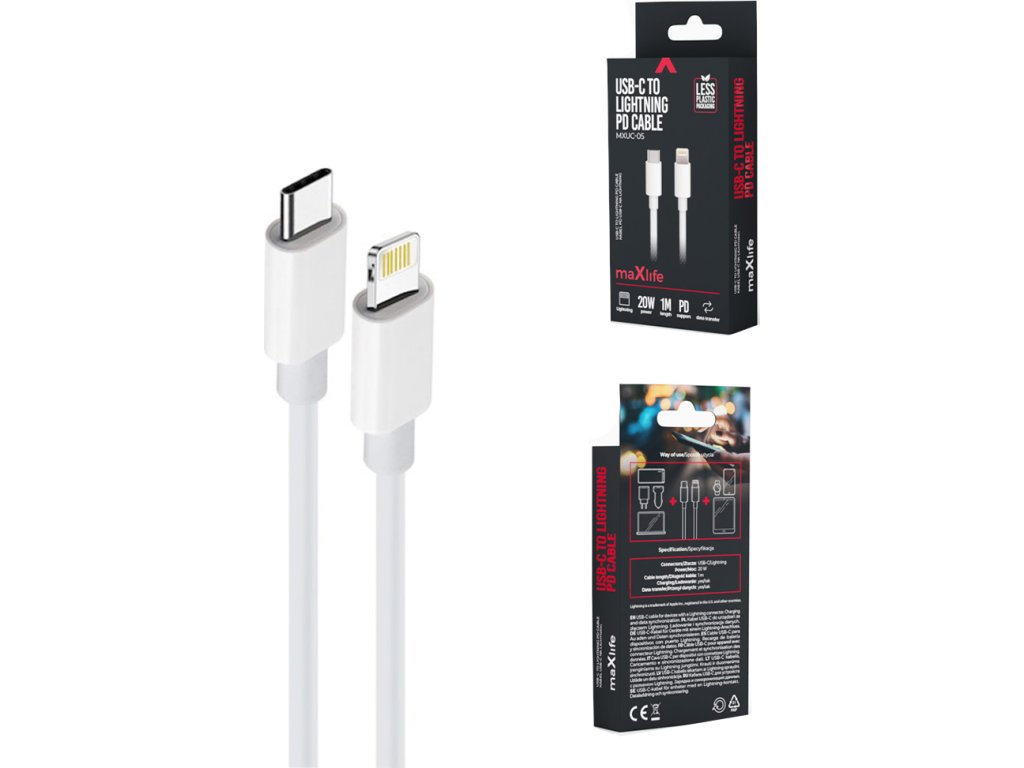 Kabel Maxlife MXUC-05 USB-C - Lightning 1,0 m 20W bílý