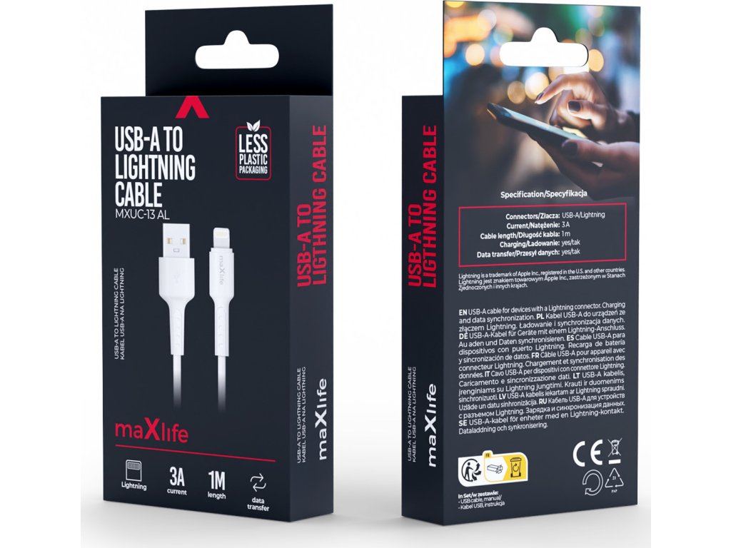 Kabel Maxlife MXUC-13 USB-A - Lightning 1,0 m 3A bílý