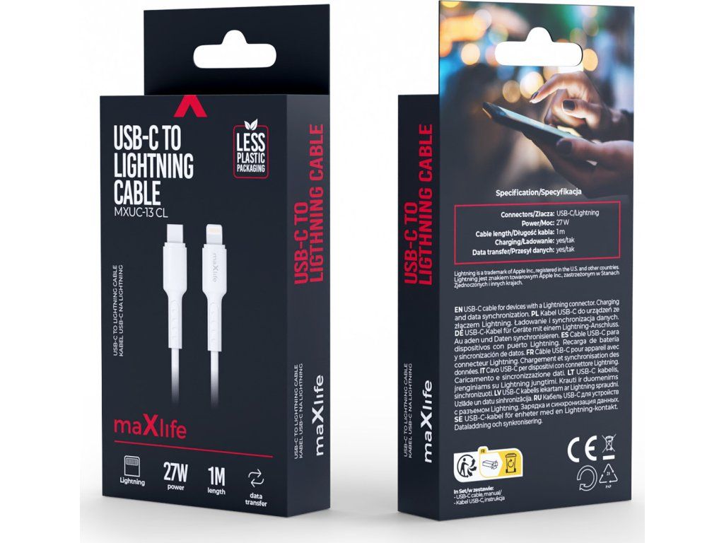 Kabel Maxlife MXUC-13 USB-C - Lightning 1,0 m 27W bílý