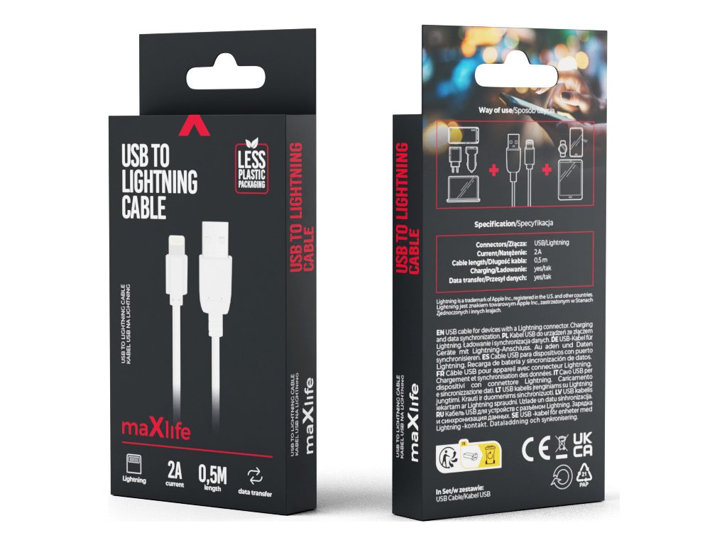 Kabel Maxlife USB - Lightning 0,5 m 2A bílý
