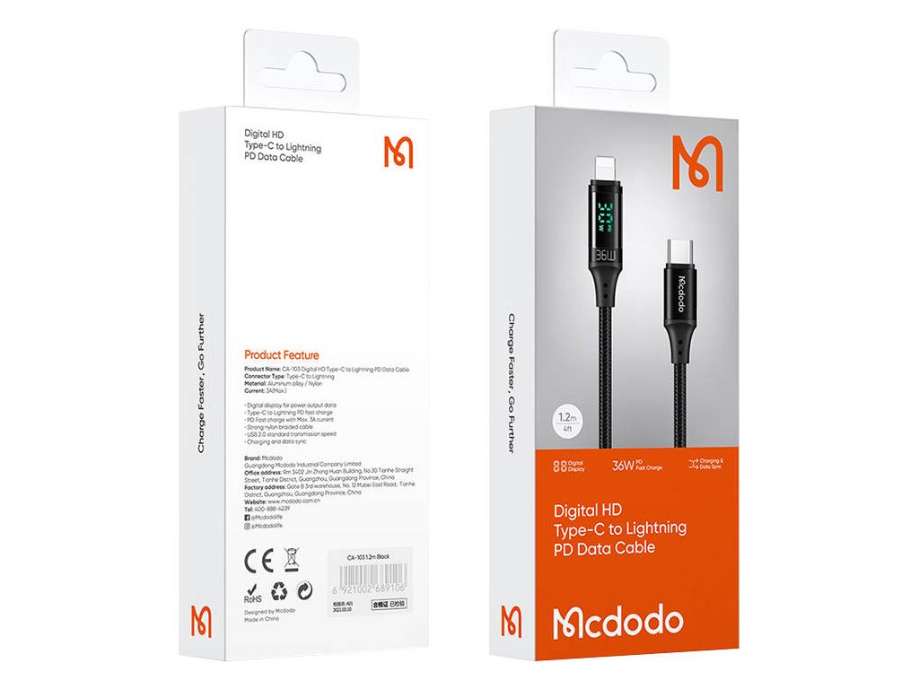 S kabelem Mcdodo můžete okamžitě obnovit napájení svého zařízení a přenášet soubory. Je kompatibilní se všemi modely chytrých telefonů a tabletů Apple. Vestavěný LED displej navíc zobrazuje nabíjecí výkon a použití vysoce kvalitních materiálů zajišťuje odolnost proti poškození. Navíc suchý zip připevněný ke kabelu usnadňuje skladování výrobku.