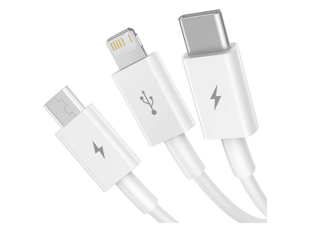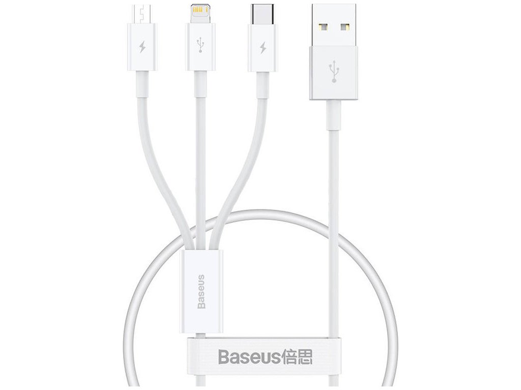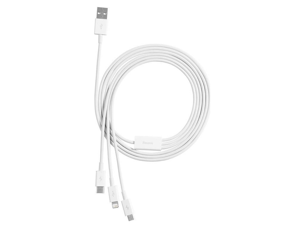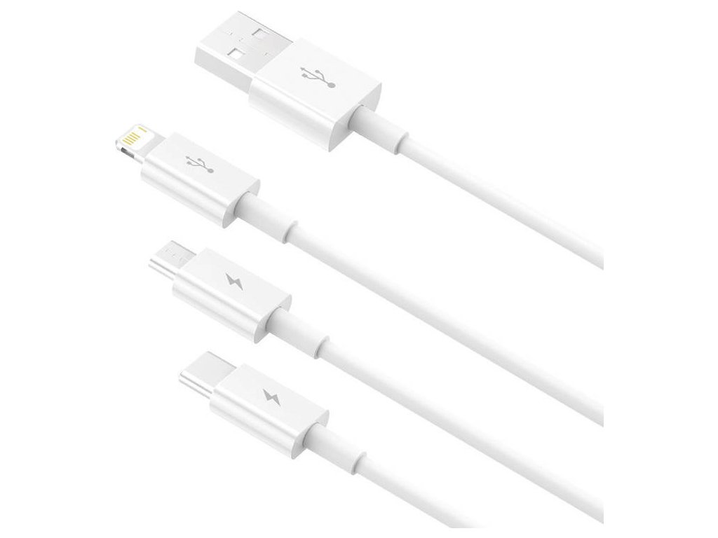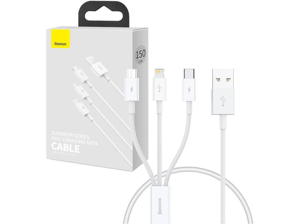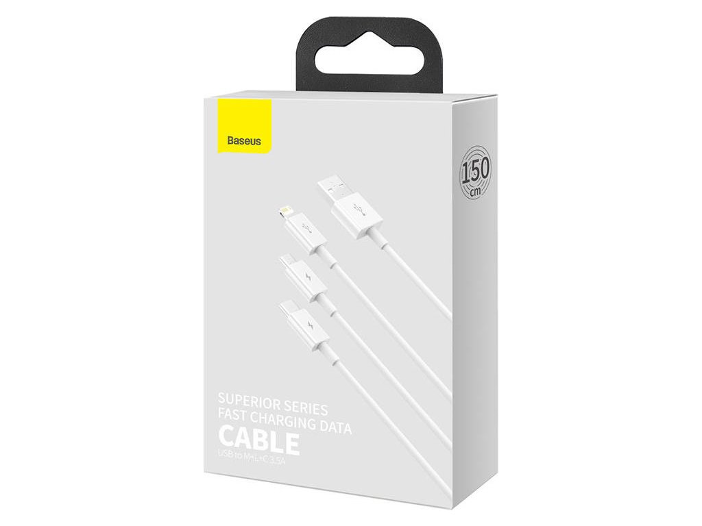 Kabel pro rychlé nabíjení USB na M+L+C Baseus Superior Data 3,5 A 0,5 m (bílý)