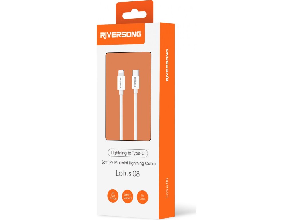 Kabel Riversong Lotus 08 USB-C - Lightning 1,0 m 3A světle šedý CL76