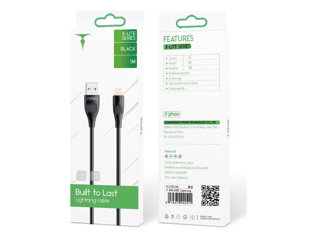 Kabel T-PHOX X-LITE Lightning, černý, 1 m, 3 A