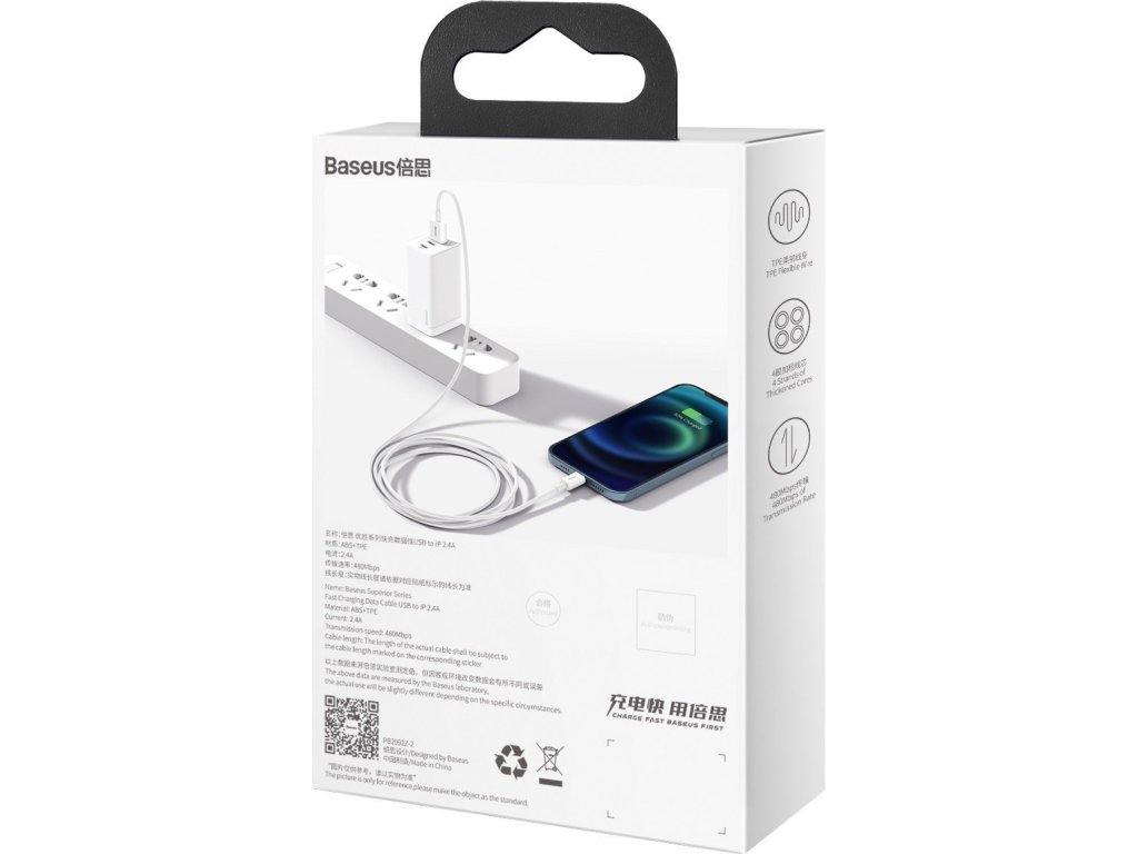 Výrobok podporuje rýchle nabíjanie 2,4 A. To znamená, že dokáže okamžite nabiť váš iPhone, čo vám umožní ušetriť čas! Už nemusíte večne čakať, kým bude váš smartphone opäť pripravený na prevádzku - s Baseusom to trvá len pár okamihov.