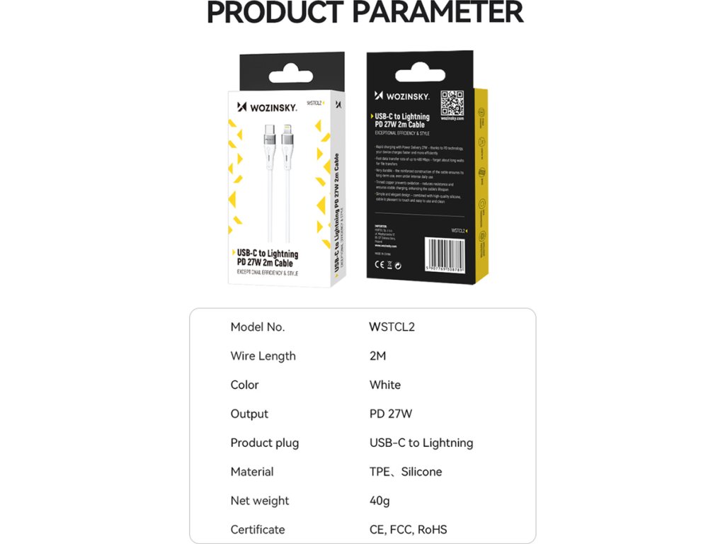 Kabel Wozinsky WSTCL1 Lightning / USB-C PD 27W 1 m - bílý